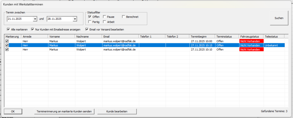 - Neue Suchfunktion „Kunden mit Werkstattterminen“ implementiert