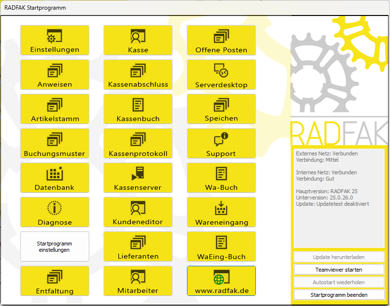 Das RADFAK Startprogramm dient als zentrale Startplattform für alle RADFAK Module und einige Helfer